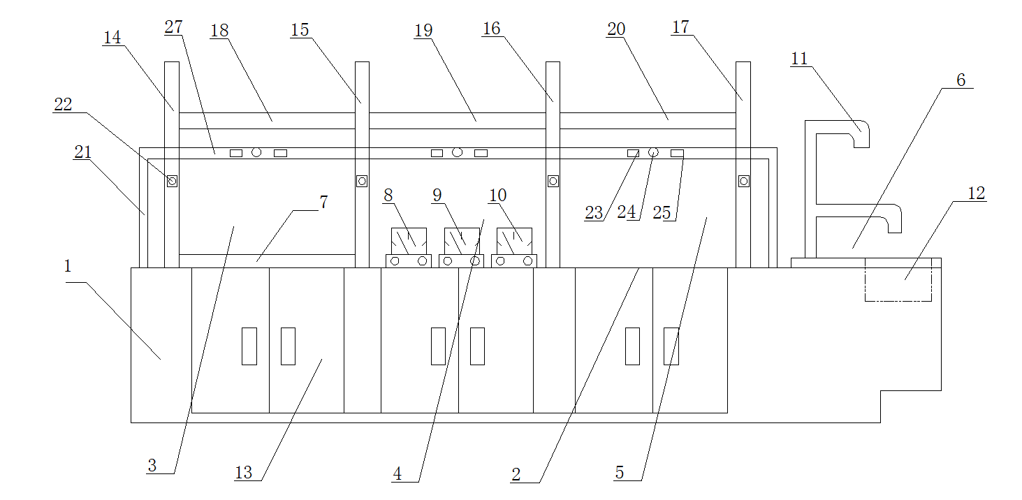 6、根據(jù)權(quán)利要求1所述的一種多功能實(shí)驗(yàn)臺(tái),其特征在于:通過所述第一分隔板和第二分隔板固定有恒溫實(shí)驗(yàn)置物架,通過所述第二分隔板和第三分隔板固定有物理實(shí)驗(yàn)置物架,通過所述第三分隔板和第四分隔板固定有普通實(shí)驗(yàn)置物架。