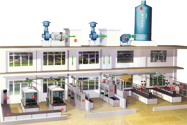 1、 排風(fēng)系統(tǒng)工程是實驗室建設(shè)的關(guān)鍵,通風(fēng)柜的效果好壞主要在于排風(fēng)系統(tǒng)設(shè)計。